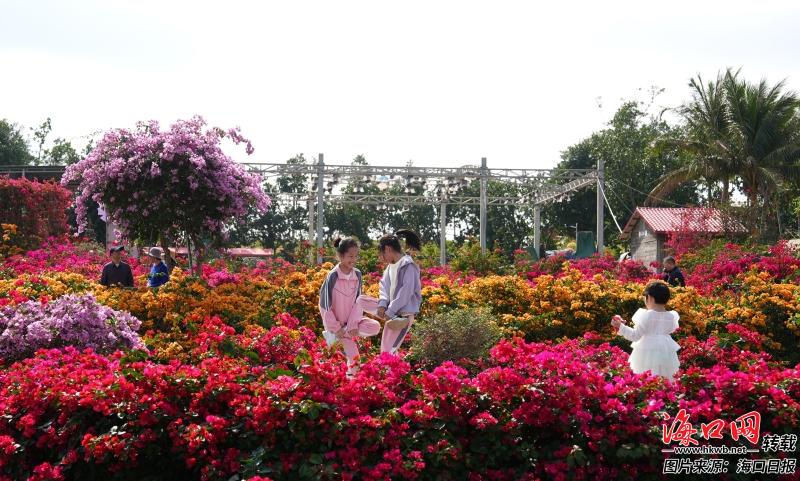 连日来,海口三角梅共享农庄内各色三角梅迎来盛花期,小朋友在农庄内玩耍。记者 杨忠凯 摄