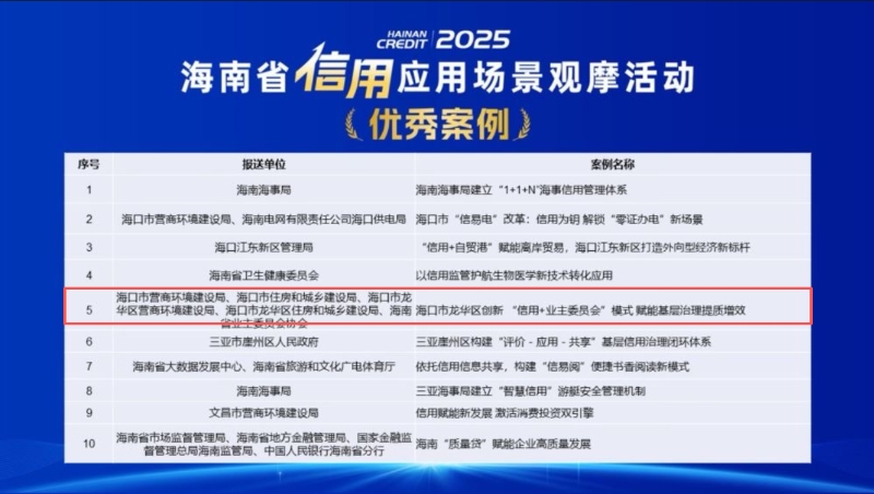海口龙华区1个案例获评海南省信用应用场景优秀案例。(龙华区供图)
