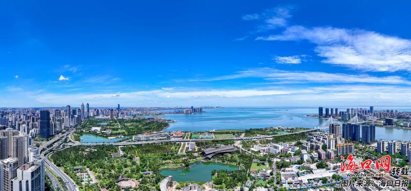 在海口湾沿线,鳞次栉比的商务楼宇与椰城的宜人风光相得益彰,展现出城市的勃勃生机。 记者 苏弼坤 摄