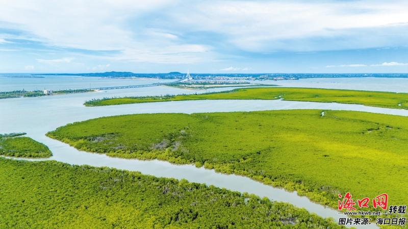 航拍视角下,海南东寨港国家级自然保护区水清、岸绿、天蓝,生态环境优美。记者 苏弼坤 摄