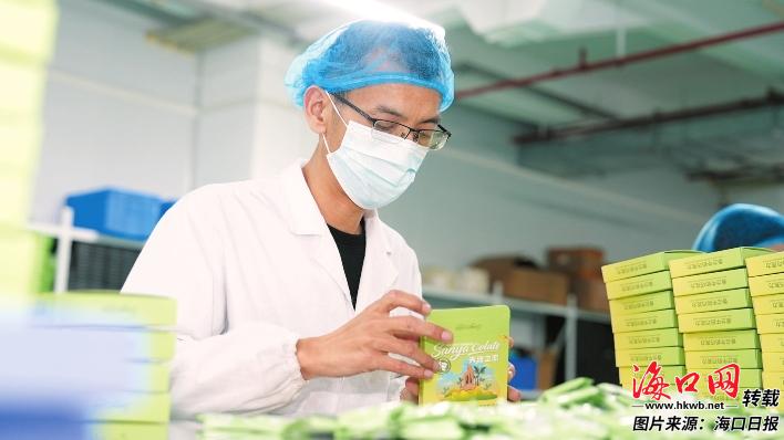 1月9日,在位于海口江东新区的加绿巧食品制造业(海南)有限责任公司,工作人员正在打包刚生产的巧克力。据了解,目前加绿巧公司年产值预计可达8000万元,每年会有大量巧克力销往全国各地。海南自贸港全岛封关运作后,公司订单量持续增加,目前巧克力订单已经排到了今年6月份,订单总货值超3000万元。记者 杨忠凯 摄