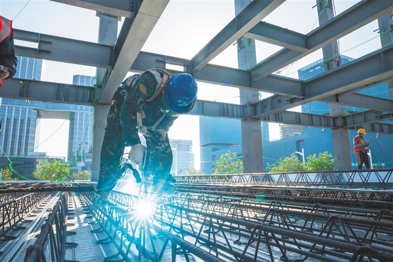 近日,位于海口江东新区总部经济区(生态CBD)的京东海南供应链总部项目建设现场,工人们利用晴好天气抓紧开展钢结构施工,为春节前实现封顶的目标加速冲刺。据悉,该项目占地面积约1.2万平方米,总建筑面积达4万平方米,建成后将涵盖酒店、商务金融办公、休闲娱乐等多种功能,成为京东集团在海南的重要区域中心。