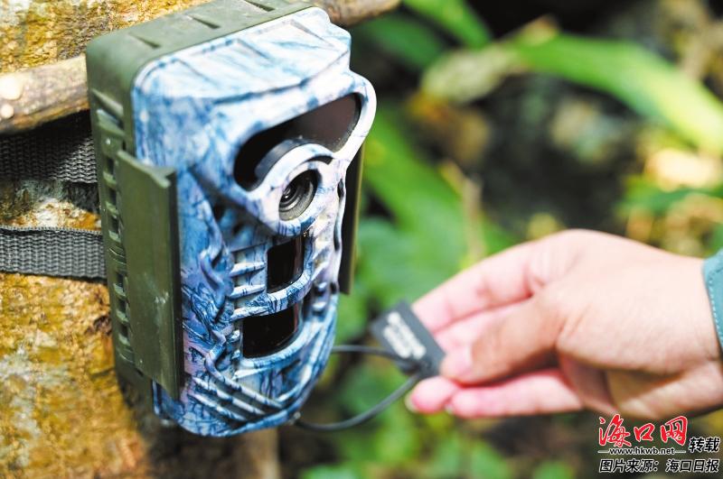 1月10日,海口市五源河国家湿地公园上游,护林员正在安装红外线相机,用于监测记录野生动植物。 记者 石中华 摄