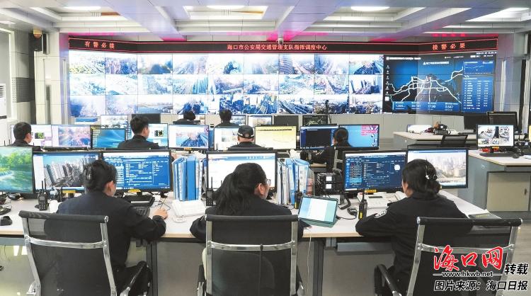 1月10日,在海口市公安局交通管理支队指挥调度中心内,屏幕上的全市路网实时状态一目了然,指挥人员可快速调取实时路况和警情处置进度。记者 杨忠凯 摄
