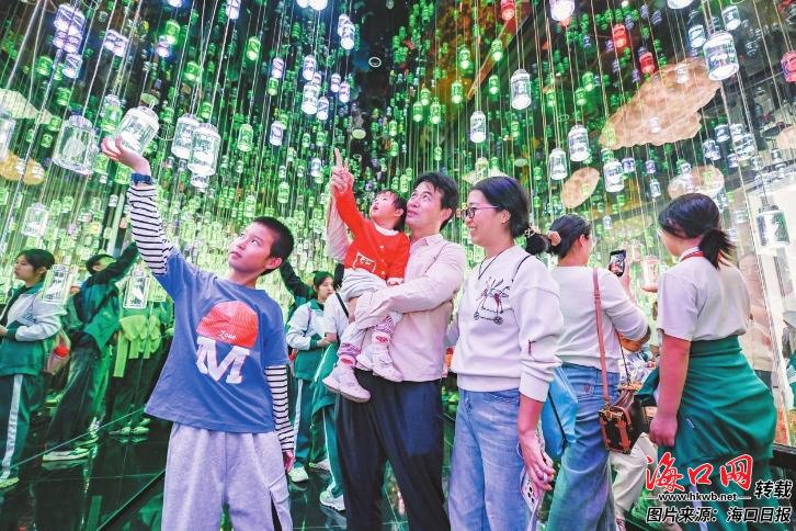 1月17日,市民游客在位于海口的海南科技馆种质主题艺术空间参观。