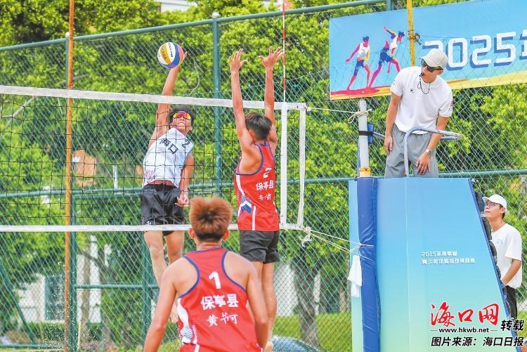 2025年海南省青少年沙滩排球锦标赛在海口经济学院开打,学生运动员们全力以赴展开比拼。记者 孙士杰 摄