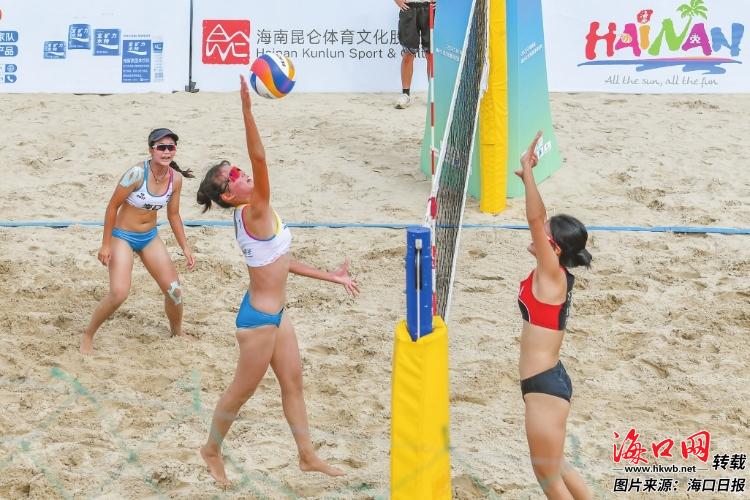 海口凭借优质的自然资源,已成为沙滩排球比赛的“天然赛场”。记者 孙士杰 摄