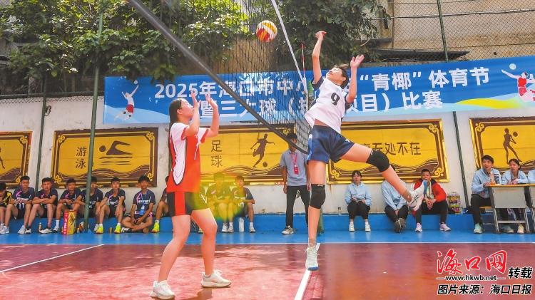首届海口市中小学生“青椰”体育节上,排球比赛在琼山中学初中部精彩开打。记者 康登淋 摄
