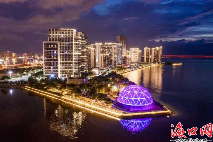 夜晚下的海口湾保利中央海岸段,星空之境“明星地标”引人注目。(秀英区供图)
