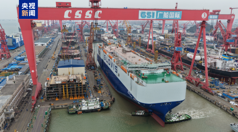 记者从中船集团广船国际了解到,近日,广船为韩国公司建造的10800车LNG双燃料汽车运输船1号船已出坞,这是目前国内建造的最大汽车运输船。