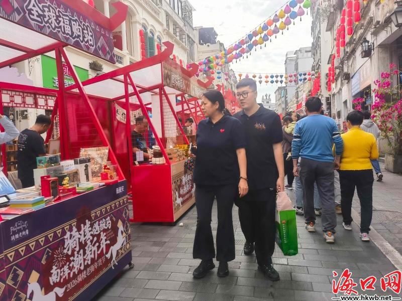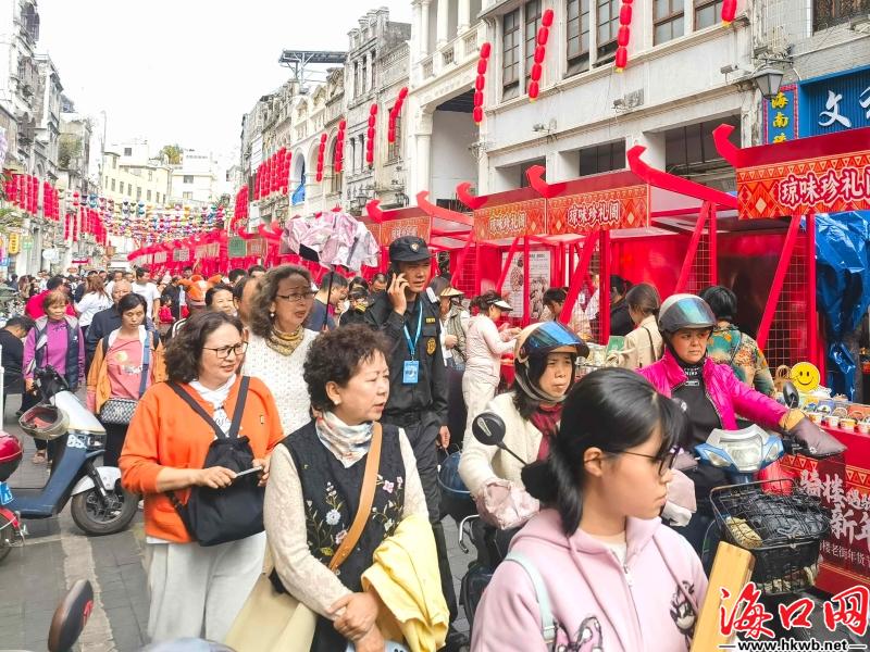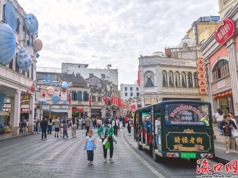 海口骑楼老街,市民游客络绎不绝。史子杨 摄