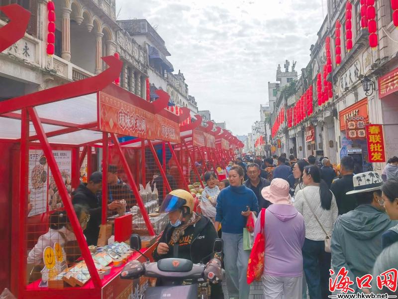 目前,年货街已吸引百余家商户入驻,涵盖零食糖果、腊味干货、糕点年货、酒水、生鲜食材、节日装饰等多个品类。为迎接此次年货节,本地商户做了充分准备,除了传统年货外,还新增了便携精美、富有海南特色的伴手礼,如小包装椰子制品、南洋文创等,并通过试吃、手作体验等活动,让消费者感受浓厚年味。