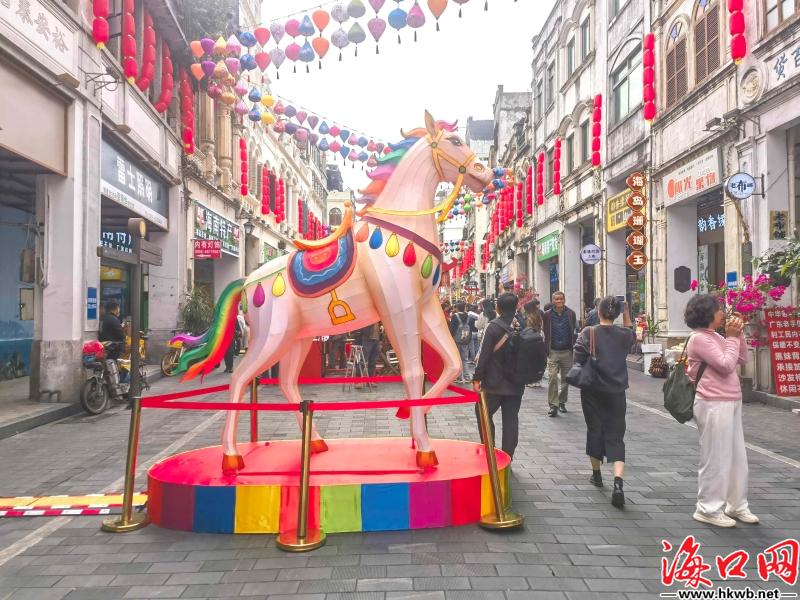 海口网1月25日消息(记者史子杨 特约记者萧海山 摄影报道)1月25日上午,象征祥瑞的“骑楼骏马”艺术装置在海口骑楼老街北门广场正式向公众开放展示,标志着2026“骑楼遇骏马·南洋潮新年”骑楼老街年货节拉开帷幕。本次活动为期38天,将持续至3月3日,融合百年骑楼、骏马活力与南洋风情,打造兼具传统年味与时尚体验的文化节庆,为海口市民游客打造一个可逛、可玩、可品、可忆的新春目的地。