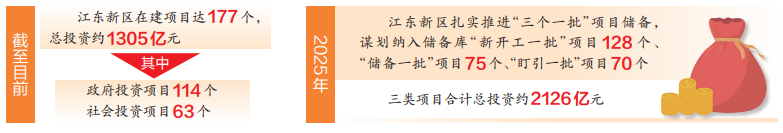 江东新区聚焦“出示范、强韧性、提品质”目标,以项目建设为引擎,全力抓投资、促发展,推动城市综合品质实现稳步跃升。截至目前,园区在建项目达177个,总投资约1305亿元。源源不断的项目动能为园区发展注入强劲活力,一幅产城融合、民生为本的高质量发展画卷正徐徐展开。