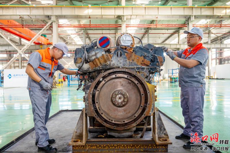 在中车国际车辆产业(海南)有限公司车间内,工作人员正在维修发动机。记者 石中华 摄