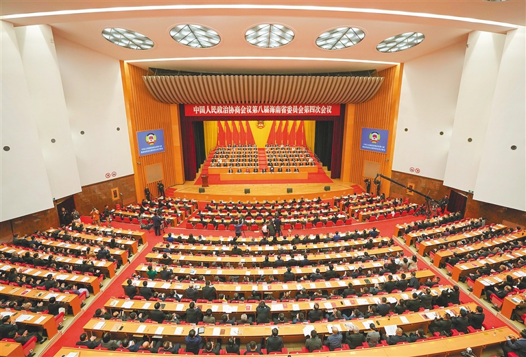 凝心聚力共绘宏伟蓝图,踔厉奋发谱写崭新篇章。中国人民政治协商会议第八届海南省委员会第四次会议1月26日上午在省人大会堂隆重开幕。来自我省各党派团体和各族各界的省政协委员汇聚一堂,将紧紧围绕全省中心工作认真履职尽责,为把海南自由贸易港打造成为引领我国新时代对外开放的重要门户积极建言献策、广泛凝聚共识。