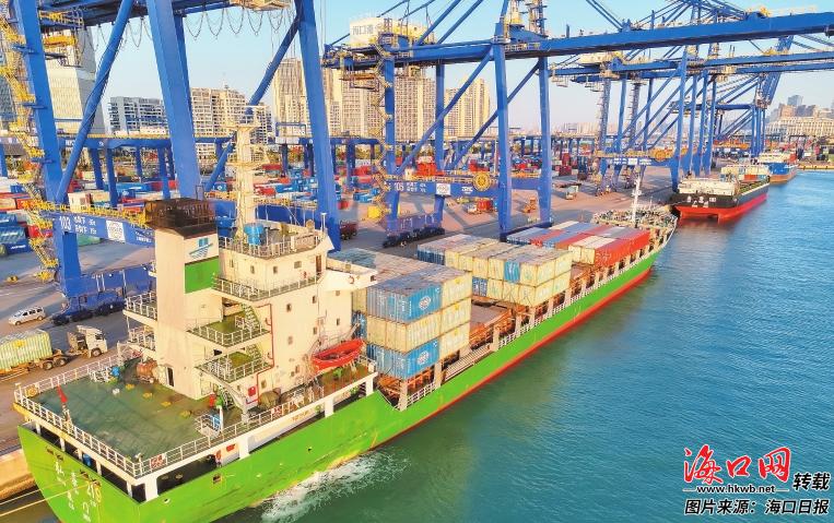 1月25日晚,载有10个高等级技术分类橡胶集装箱的“弘泰219”轮驶离海口秀英港区运往山东青岛,标志着海南自贸港正式封关后,海口港“二线口岸”秀英港区首票加工增值免关税货物集装箱运输业务正式落地。
