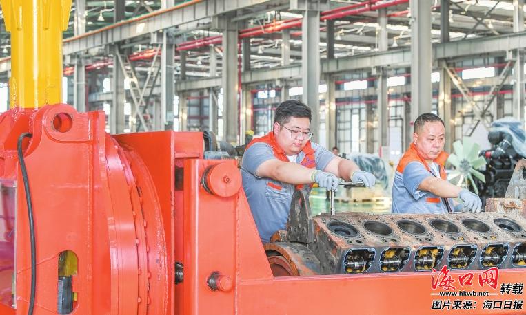 海口综保区中车国际车辆产业(海南)有限公司生产车间里,工作人员专注调试保税维修的汽车发动机;美安生态科技新城内,倍特药业的技术人员全力冲刺设备调试,为投产做足准备……