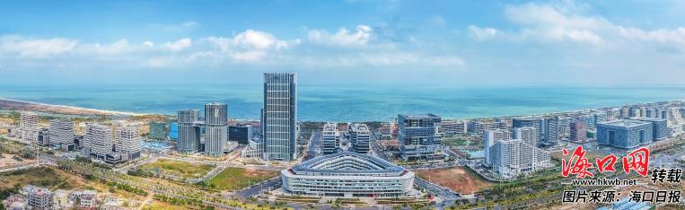 俯瞰海口江东新区总部经济区(生态CBD),现代化楼宇临海而立,与滨海风光交相辉映,总部集聚态势初显。
