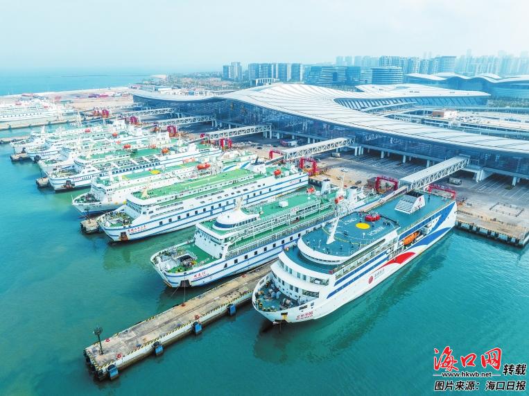 新海港码头汽笛悠扬,客滚船往来穿梭,琼州海峡黄金水道的枢纽活力尽显。