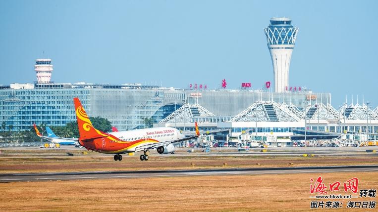 1月14日,由新加坡飞来的海南航空航班在海口美兰国际机场降落。 记者 石中华 摄