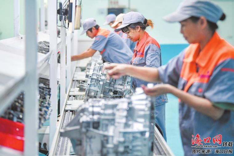 在位于海口综保区内的中车国际车辆产业(海南)有限公司车间,工作人员正在检测、维修一批来自境外的汽车变速箱。 记者 苏弼坤 摄