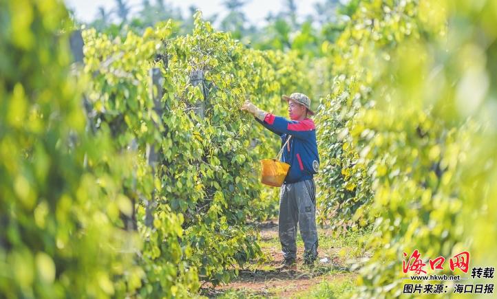 在琼山区大坡镇,近4万亩胡椒田连绵起伏,作为海南最大的胡椒连片生产基地,这里的胡椒种植全程遵循《大坡胡椒地理标志产品生产技术规程》,从种苗选育到采收晾晒均有明确标准。2025年,大坡胡椒出口中东地区达1000吨,价值7800万元;2024年成功入选国家级农业品牌精品培育计划,成为品质的“金名片”。