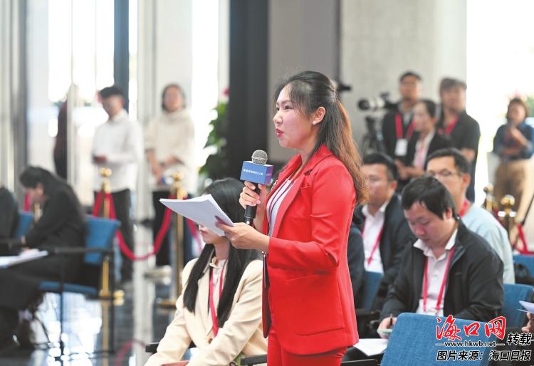 1月月29日,海南省第七届人民代表大会第五次会议首场记者招待会现场,记者向代表们提问。记者 孙士杰 摄
