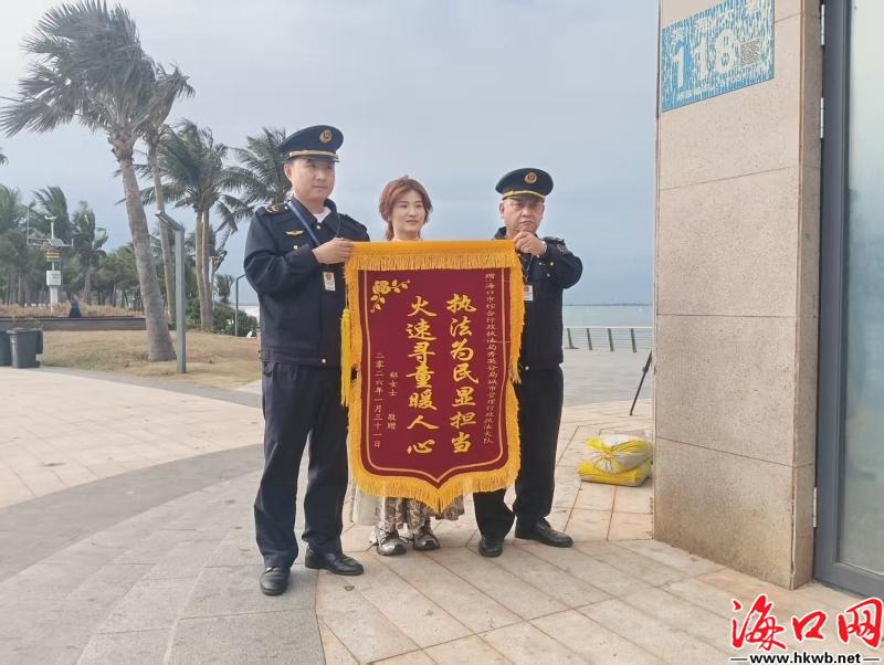 海口网1月31日消息(记者云梦怡 特约记者陈创淼)“我的孩子不见了!”1月30日16时40分许,一位焦急的母亲,向正在巡逻的市综合行政执法局秀英分局贯通中队的执法队员们求助。在了解情况后,队员们立即展开立体式搜寻:一组队员沿海滩徒步寻找;另一组队员驾驶执法电瓶车沿景观道,开展地毯式排查。
