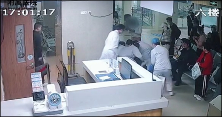 门诊护士陈秋花第一时间冲上去查看并大声呼唤其他医护支援,随后一批医护涌到现场。