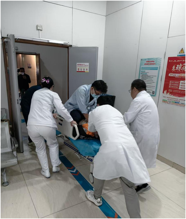 在持续心肺复苏、球囊辅助呼吸、静脉推注肾上腺素提升心率的同时,抢救团队迅速将患者向急诊科转运。