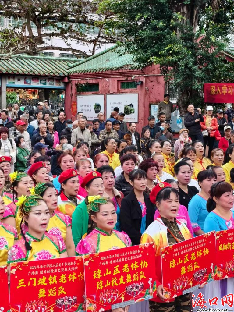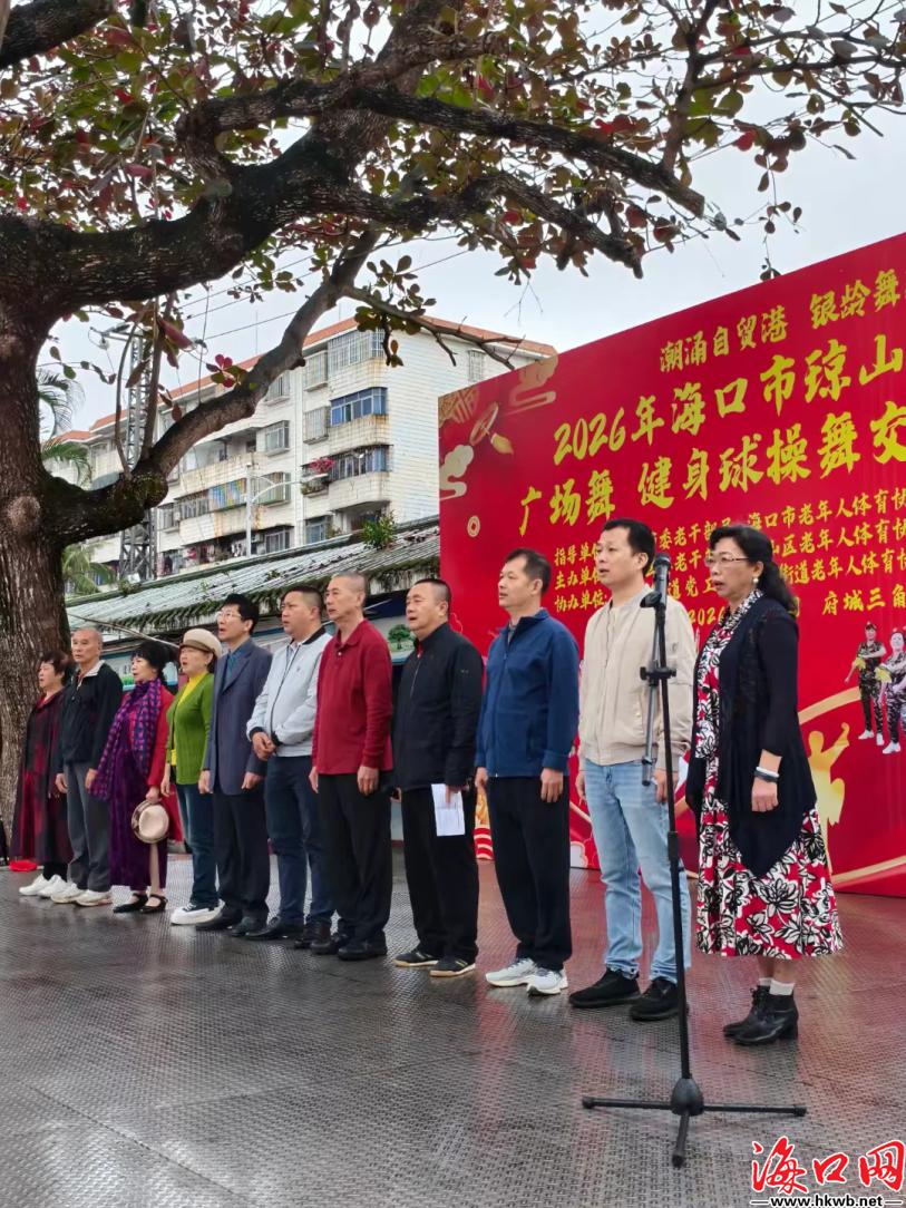 海口网2月2日消息(记者谢昀惠 特约记者 许晶亮)2026年1月31日上午9时,“潮涌自贸港 银龄舞新春”琼山区老干部迎新春广场舞、健身球操舞交流展演活动在府城三角公园启幕。18支代表队220多位老干部登场,18个节目轮番上演,近千名市民到场观看,现场掌声不断。