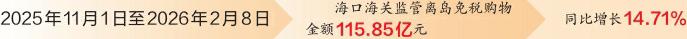 记者从海口海关获悉,自2025年11月1日离岛免税政策调整以来,截至2026年2月8日,新政实施满百日,海口海关监管离岛免税购物金额115.85亿元,同比增长14.71%。