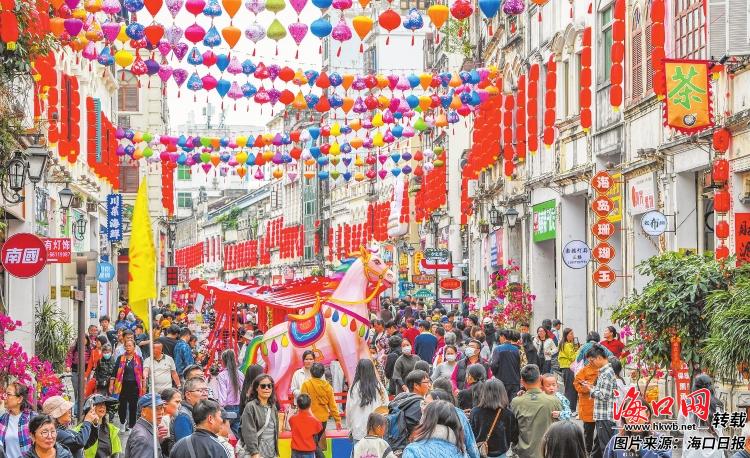 近日,海口骑楼老街人潮涌动,市民游客或打卡拍照,或选购年货。记者 康登淋 摄