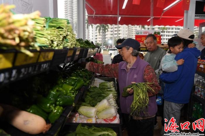 今年1月以来,菜篮子集团已在龙华区遵谭镇咸谅坡、秀英区东山镇马坡洋、琼山区三门坡镇大荒洋等7个基地铺开直采,累计收购本地小白菜、黑叶白、青梗小白菜、空心菜等时令蔬菜120吨。这批菜次日便摆上直营门店货架,春节期间将作为“一元菜”轮番推出,摊位前贴着醒目的绿色产地标,方便市民群众购买。