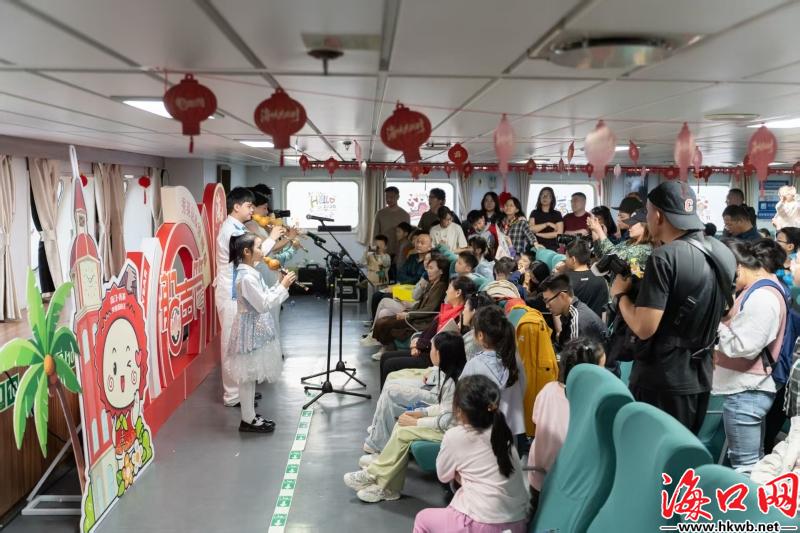 宣讲间隙,文艺的清风拂过船舱。悠扬婉转的葫芦丝演奏《荷塘月色》《月光下的凤尾竹》,带来南国独有的雅致韵味;充满地域风情的非遗石山民歌《火山谣》,唱出了秀英火山的古老与活力;青春灵动的歌舞《小美满》《New Boy》,则瞬间点燃了现场气氛。