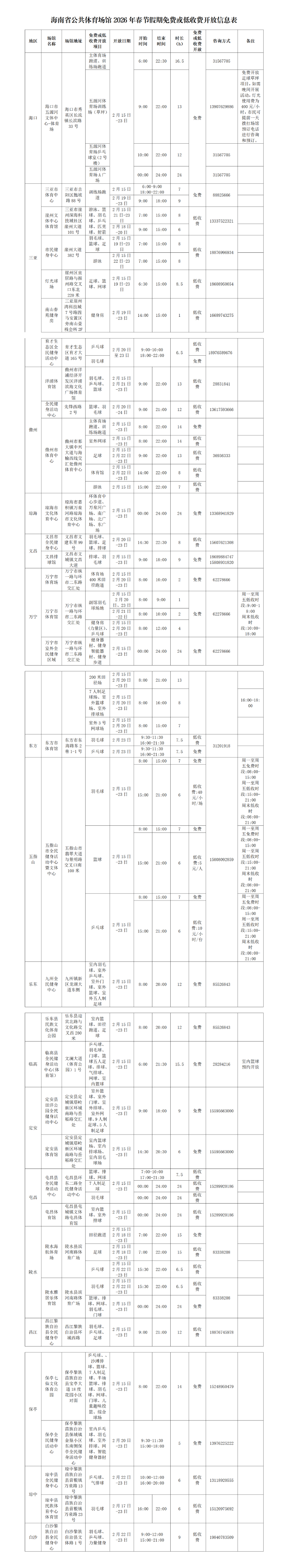 海南省多个公共体育场馆