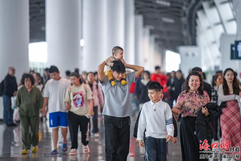 2月17日大年初一,在海口新海港,抵达的旅客从到达厅走出。记者苏弼坤 实习生陈新锐 摄