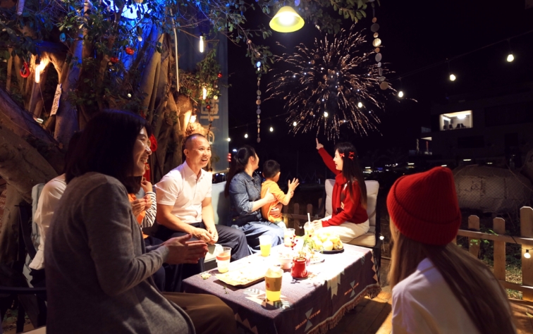 除夕夜一场璀璨的烟火秀率先点燃了节日气氛,村内的民宿早在节前便已预订一空。