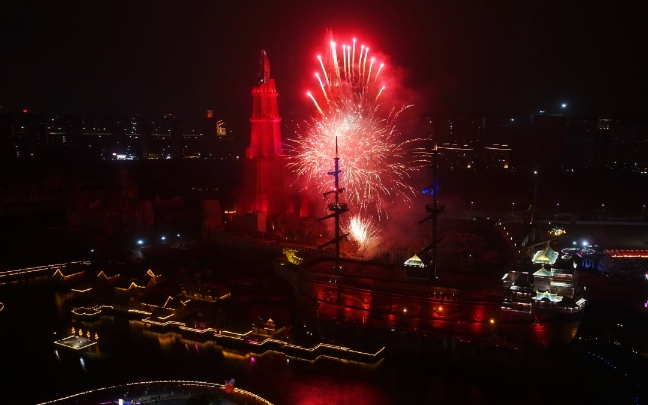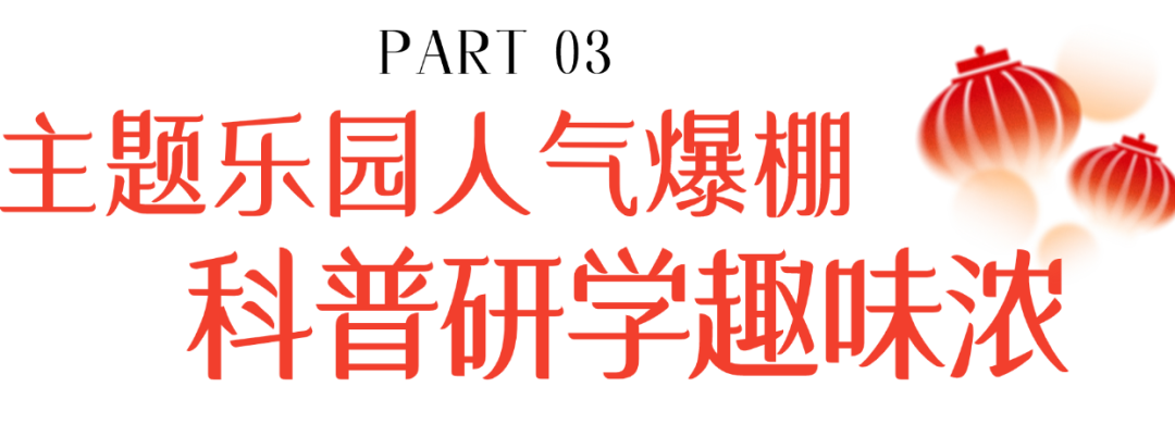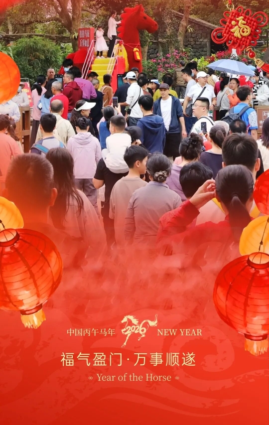 全新升级的光影特技秀《光之密钥-铁骑觉醒》震撼上演,将炫酷特效与马术演绎相结合,打造极具冲击力的视觉盛宴。园内精心布置的自贡非遗花灯流光溢彩,营造出喜庆新春氛围,吸引众多游客驻足留影。当晚,璀璨的新春烟花秀点亮夜空,为佳节增添浪漫瞬间。据悉,烟花秀初三至初五及元宵夜再次上演。
