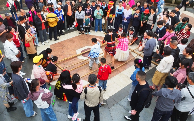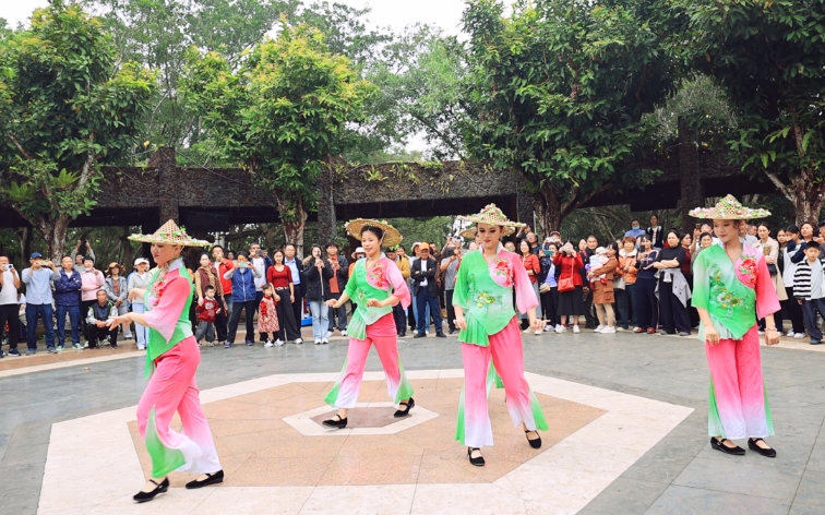 作为新春登高祈福的传统去处,海口火山口公园在大年初二迎来大批市民游客,园内人流如织,洋溢着喜庆祥和的节日气氛。现场,竹竿舞、儋州调声、黎族舞蹈、树叶吹奏等民俗歌舞表演轮番上演,海南公仔戏也精彩亮相,让游客在登山赏景中领略地道的琼岛文化魅力。