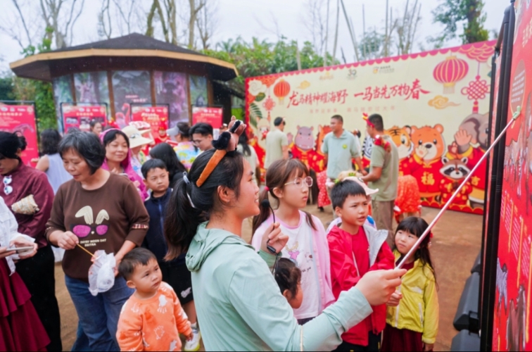 在海南热带野生动植物园内欢声笑语不断,以“海野萌马陪您过大年”为主题的新春活动吸引众多亲子家庭。