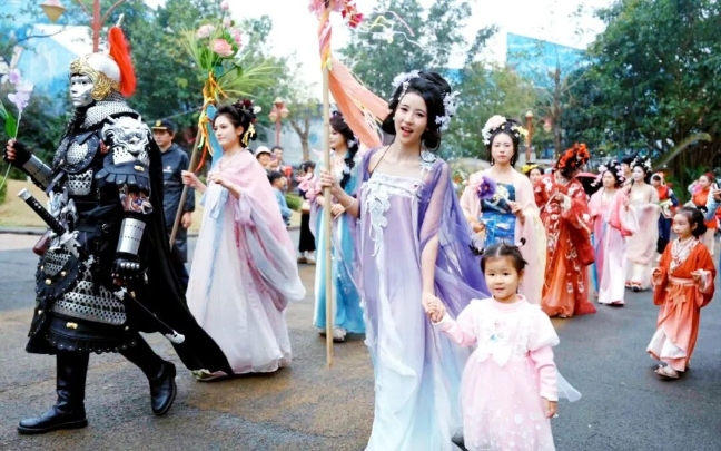 大年初二,海南长影奇幻乐园迎来客流高峰。园区首届国潮非遗庙会正如火如荼地举行,将持续至3月3日。
