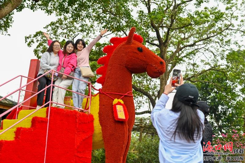 在海南长影奇幻乐园,首届国潮非遗庙会热闹非凡。“昨天看了烟花秀,今天特意来看非遗表演。”广东游客陈嘉明带着家人开心逛庙会,不时用手机记录精彩瞬间。海南热带野生动植物园里,“萌马巡游”吸引了众多亲子家庭参与,孩子们与“萌马”开心互动。在海口火山口公园,民俗祈福活动有序开展,市民游客现场感受火山文化的独特魅力。