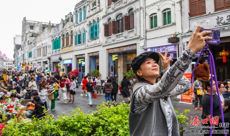 2月18日,市民游客在骑楼老街拍照打卡。记者 康登淋 摄