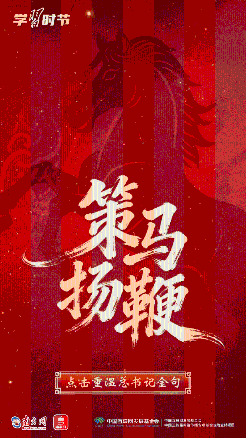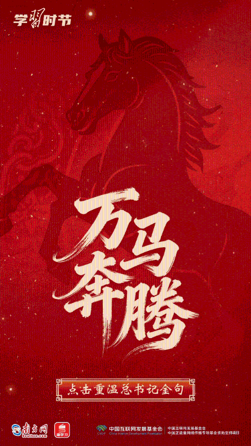 习近平总书记多次用“龙马精神”“马到功成”“一马当先”等耳熟能详的成语,向全国各族人民送上最美好的新春祝福,寄予奋进向上的殷殷嘱托。马年新春,来接收总书记的祝福和寄语,一起策马扬鞭,奔向更美好的明天!