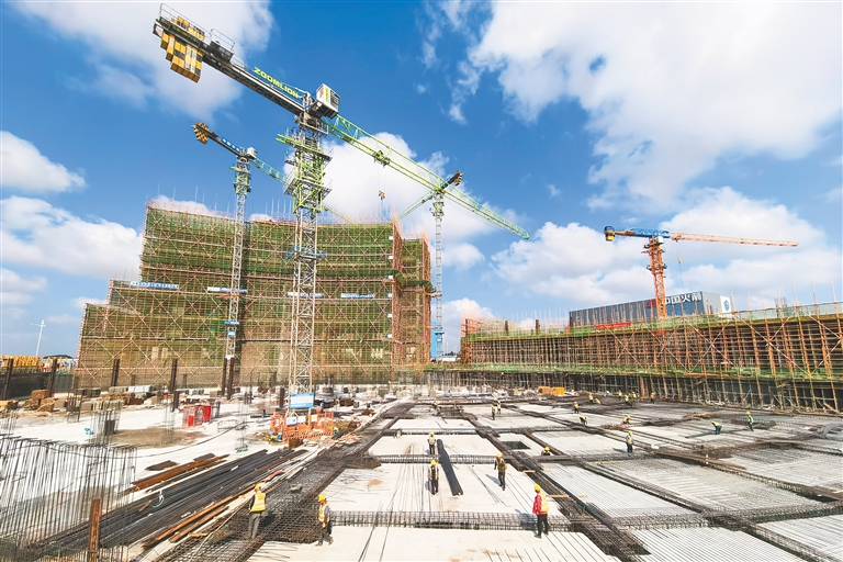 2月21日,海南商业航天发射场办公楼包含指挥控制中心和共享研发中心项目,主要包括地上塔楼和裙楼、地下室及室外工程等。工程人员正在有序施工。海南日报全媒体记者 武威 摄