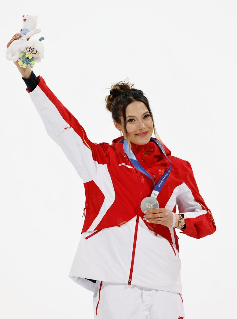2月9日,谷爱凌在领奖台上。当地时间2月9日,在意大利利维尼奥举行的米兰-科尔蒂纳冬奥会自由式滑雪女子坡面障碍技巧决赛中,中国选手谷爱凌获得亚军。新华社记者 张宏祥 摄徐梦桃 王心迪 李天马