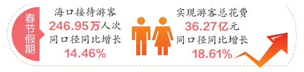 据央视《新闻联播》报道,春节假期前五天入境游机票量同比激增312%,上海、北京、海口等地跻身全国入境游热门目的地前十城市。记者从市旅文局了解到,春节假期,海口接待游客246.95万人次,同口径同比增长14.46%;实现游客总花费36.27亿元,同口径同比增长18.61%。