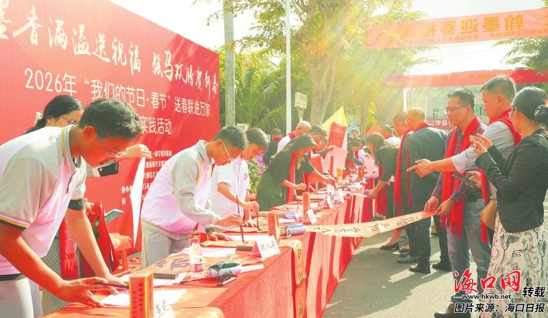 2026年春节前,海口市第一中学教育集团组织师生走进海口市永兴中学开展写春联活动,三校师生挥毫泼墨,共享集团化办学优质资源和教育发展成果。“学校有专业的老师、温馨的学习氛围,孩子上学高兴,我们看着也开心。”看着师生之间的互动场景,海口市永兴中学学生家长吴芳欣慰地说。